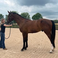 2024 Belgian Warmblood gelding by Iceman de Muze (Erco Van T Roosakker x Teekitiezzie de Muze) out of our lovely mare U Had Me at Hello (Omano BC (Cumano/Sapphire) x Presley Boy/Indoctro). Balerion is a stunning fellow, has a great mind, three lovely gaits, excellent type, and has a sense of humor! He will be tall, close to 17hh. Balerion stands for the vet/farrier, loves water, ties/cross ties, really no vices. He was just gelded. With this proven pedigree you’ve a superstar in the making!!