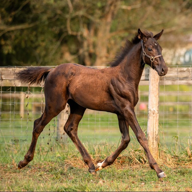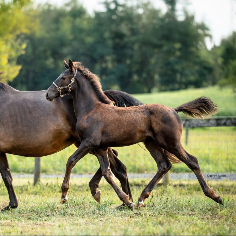 Related to Gribaldi through the dam side and to Glamourdale through the sire’s side, this black filly has the makings of a lovely dressage horse. She is very outgoing, sweet, curious and easy to work with. I own too many horses to keep another.