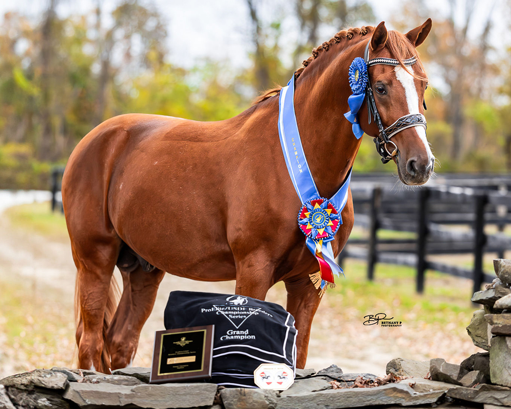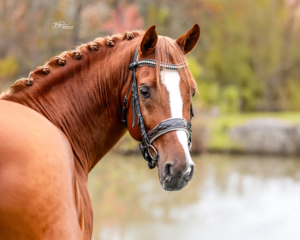 A talented pony stallion who has acquired an extensive sport record! Branley Ash Nautilus was a consistent competitor in-hand from his yearling year forward, consistently earning top scores and placings along the way including winning the Pony Grand Championship at the prestigious Dressage at Devon in 2021. Nautilus returned to Devon in 2025, where he was named Reserve Stallion Champion and won the USDFBC East Coast Stallion Final. Partnered with Molly Maloney, Nautilus has been equally successful under saddle. He has been the USDFBC New England 4-Year Old Materiale Champion, the USDF Region 8 Champion at First Level, and earned a 4th place finish at the US Dressage Finals. In 2025, he easily stepped up to Third Level and earned a 3rd place finish in the USDF Region 8 Third Level Championship.